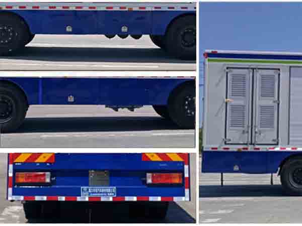 | 其他 | 該車廂體為整體封閉式且頂部密封不可開啟.車廂內(nèi)固定裝置為發(fā)電機(jī),電纜盤等供電系統(tǒng).側(cè)、后防護(hù)均為裙板式結(jié)構(gòu),材料Q235鋼,側(cè)、后防護(hù)下緣離地高度均為:500mm.ABS的型號(hào)及生產(chǎn)廠家:J ABS/焦作博瑞克控制技術(shù)有限公司.此整車前懸/軸距/后懸對(duì)應(yīng)關(guān)系為(mm):1450/1850+4350/2580;1450/1950+4250/2580;1250/1850+4350/2780;1250/1950+4250/2780. | ||