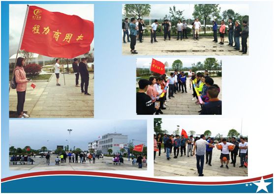 下午我們又舉行了齊心協(xié)力(踩板)和企鵝漫步(傳球)游戲,大家玩得不亦樂(lè)乎,旁邊圍觀(guān)者也沒(méi)有閑著,有的拿著程力商用車(chē)廠(chǎng)旗幟在空中搖擺,有的舉著手機(jī),不愿放過(guò)任何一個(gè)精彩瞬間,還有的站在兩邊不停的吶喊、助威,"加油、加油、加油"仿佛自己也參與其中。
