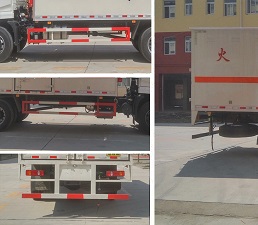 | 其他 | 該車專用于運輸危險貨物為危險貨物運輸車,廂體頂部封閉,不可開啟。隨底盤選裝駕駛室。該車主要用于運輸具有獨立容器(瓶)包裝的氨溶液(氨水),甲醛溶液,除銹磷化液(除銹磷化處理劑),電池,電池液,木餾油,類項號:8。安全裝置為導(dǎo)靜電帶,用于防止靜電。整車長/軸距/后懸對應(yīng)關(guān)系為(mm):9000/5000/2570,8600/4700/2470,8400/4500/2470。防護材料:Q23碳鋼,連接方式:左右側(cè)面及后下部防護均采用焊接連接,后部防護斷面尺寸(mm):145×50,后部防護離地高度(mm):490。該車安裝帶有衛(wèi)星定位功能的行駛記錄儀,僅采用前盤制動器和安裝ABS以及前置消聲器的底盤,采用子午線輪胎,安裝限速裝置,限速80km/h。安裝ABS,ABS型號:3631010-C2000,4460046440;生產(chǎn)廠家:東科克諾爾商用車制動系統(tǒng)(十堰)有限公司,威伯科汽車控制系統(tǒng)(中國)有限公司。發(fā)動機ISD210 50,ISB210 50,ISB190 50對應(yīng)的油耗值分別為:29.0,29.1,29.1。 | ||
