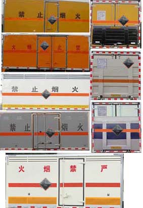 | 其他 | 該車適用于運輸危險品。廂體頂部封閉,不可開啟。該車用于運輸具有獨立容器(瓶)包裝的:氨溶液(氨水)或甲醛溶液或除銹磷化液(除銹磷化處理劑)或電池電池液或木餾油,類項號:8。防護材料:Q23碳鋼,連接方式:左右側(cè)面及后下部防護均采用焊接連接,后部防護斷面尺寸(mm):100×50,后部防護離地高度(mm):420。僅采用底盤子午線輪胎和帶ABS的底盤,該車前輪安裝盤式制動器,前置排氣管,裝配限速裝置,限速80km/h。安裝帶有衛(wèi)星定位功能的行駛記錄儀。ABS系統(tǒng)型號:APG3550500A,ABS系統(tǒng)生產(chǎn)廠家:浙江亞太機電股份有限公司。油耗對應關(guān)系(L/100km):13.0(JX493ZLQ5)。隨底盤選裝駕駛室。可選裝側(cè)門型式及位置,選裝后部液壓尾板;廂體顏色可變化,文字噴涂位置可變化??蛇x裝不開側(cè)門時,整車寬為1950mm。后部液壓尾板收起狀態(tài)長度是250mm。 | ||