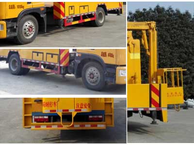 | 其他 | 1.該車前伸為850mm,整車長(mm)/高(mm)/軸距(mm)/ 后懸(mm)/后伸(mm)的對應關系為:10100/3800/4500/2660/860;9200/3700/3950/2470/700。2. 該車作業(yè)高度為22米,上裝選裝三節(jié)工作臂時作業(yè)高度為20m。3.防護材料:Q23碳鋼,連接方式:左右側面及后下部防護裝置均采用焊接連接,后下部防護裝置:截面高度為170mm,離地高度為410mm。4.ABS系統(tǒng)生產廠家,型號:焦作博瑞克控制技術有限公司,J ABS。5.文字噴圖位置和車輛顏色可變化。 | ||