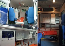 | 其他 | 選裝不同形式的頂部,及 燈、前額凸臺位置變化,前額凸臺選裝LED屏。分別對應的高度為mm:2580、2810、2590、2360、2685、2690。選裝車頂四周單個或多個爆閃燈,選裝換氣扇、側踏板。配備醫(yī)療器械柜、氧氣瓶、擔架、輸液夾持器、消毒燈救護專用裝置。選裝普通款大燈。選裝的ABS系統(tǒng)生產廠家、型號分別為博世汽車部件(蘇州)有限公司、6C11 2M110 A*。 | ||
