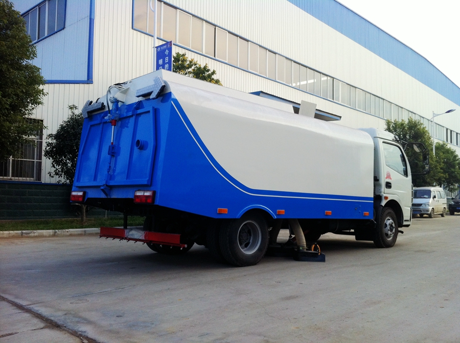 針對這樣的情況程力專用汽車公司研發(fā)尾門帶手持吸塵管的干式吸塵設(shè)備,此吸管長度較長可達20米。一般使用長度為5-6米,吸塵管直徑在180MM??梢栽谖鼔m車進不去的地方,