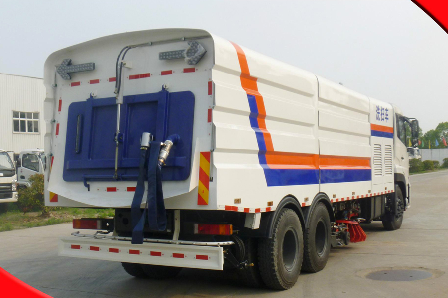 5160TXSZZ5T5型重汽T5G磁選洗掃車具有路面清洗、路面清掃、路緣清洗、路緣和路緣石立面洗刷、局部頑漬定點沖洗、低壓沖洗、噴霧除塵等多功能。有“純洗”、“全洗掃”、 “左洗掃”、 “右洗掃”、 “全掃”、“左掃”、“右掃”7種作業(yè)模式可選擇。選擇“純洗”、“全洗掃”模式清洗廣場和路面,清洗效率果好,洗凈率達90%以上。選擇“左洗掃”或“右洗掃”模式清洗路面和路緣、洗刷路緣石立面。需要進行路面清掃或路面保潔作業(yè)時,可選擇掃路模式系統(tǒng)自動開啟噴淋降塵進行噴霧降塵作業(yè)??梢韵駷⑺囈粯訉β访孢M行低壓沖洗作業(yè)。