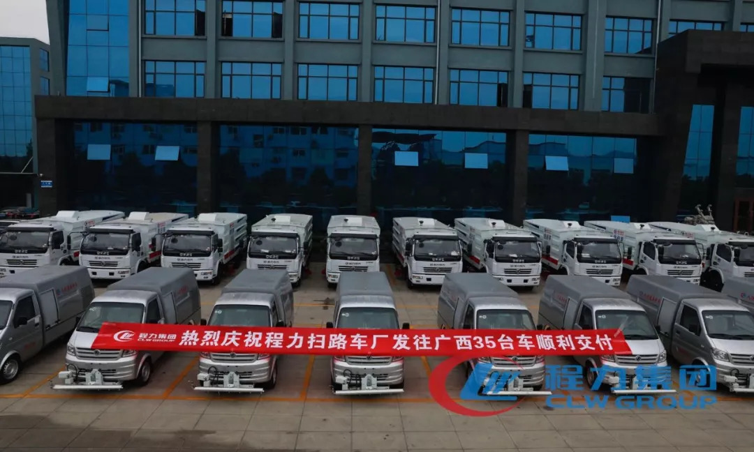 程力掃路車廠35臺道路養(yǎng)護車及掃路車整裝待發(fā)