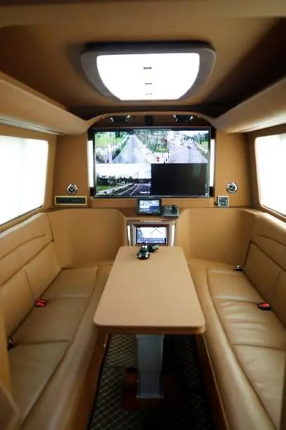 以奔馳斯賓特524客車底盤作為載體平臺,以音視頻采集,人臉識別、輿情監(jiān)控、定向驅(qū)散等設(shè)備為基礎(chǔ),進(jìn)行綜合集成。內(nèi)部設(shè)辦公卡座區(qū)域、電動吊床休息區(qū)域、衛(wèi)生間區(qū)域、茶水吧臺區(qū)域及駕駛區(qū)域。為滿足公安部門對對應(yīng)急事件快速反應(yīng)和裝備快速到位的實際需求,研發(fā)的新型、機(jī)動靈活的多功能特 裝備車。整車具備技術(shù)性、質(zhì)量可靠性原則,采用汽車底盤及設(shè)備,能夠充分保障搶險救援、反恐、處暴、排爆等任務(wù)的完成。