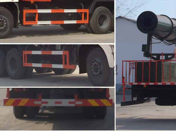 | 其他 | 1,罐體有效容積:13.44立方米,罐體尺寸(mm):4500×2400×1600;整車長(zhǎng)/前懸的對(duì)應(yīng)關(guān)系為(mm):10640/1515,10575/1450,10375/1250.2,側(cè),后防護(hù)裝置材料材質(zhì):Q23,側(cè),后防護(hù)均用連接,后部防護(hù)裝置斷面尺寸(寬×高)60×150(mm),后部防護(hù)離地高度:510mm;3, ABS生產(chǎn)廠家: 東科克諾爾商用車制動(dòng)系統(tǒng)(十堰)有限公司,型號(hào):3631010-C2000;4,隨底盤選裝駕駛室,選裝駕駛室遮陽(yáng)板與側(cè)面臥鋪開(kāi)窗口;5,專用裝置:罐體和噴霧機(jī),主要用于抑塵。選裝不同的外形圖片及抑塵霧炮外形。專用裝置為抑塵霧炮,型號(hào)為L(zhǎng)M-100,生產(chǎn)廠家為湖北龍馬汽車裝備有限公司。 | ||