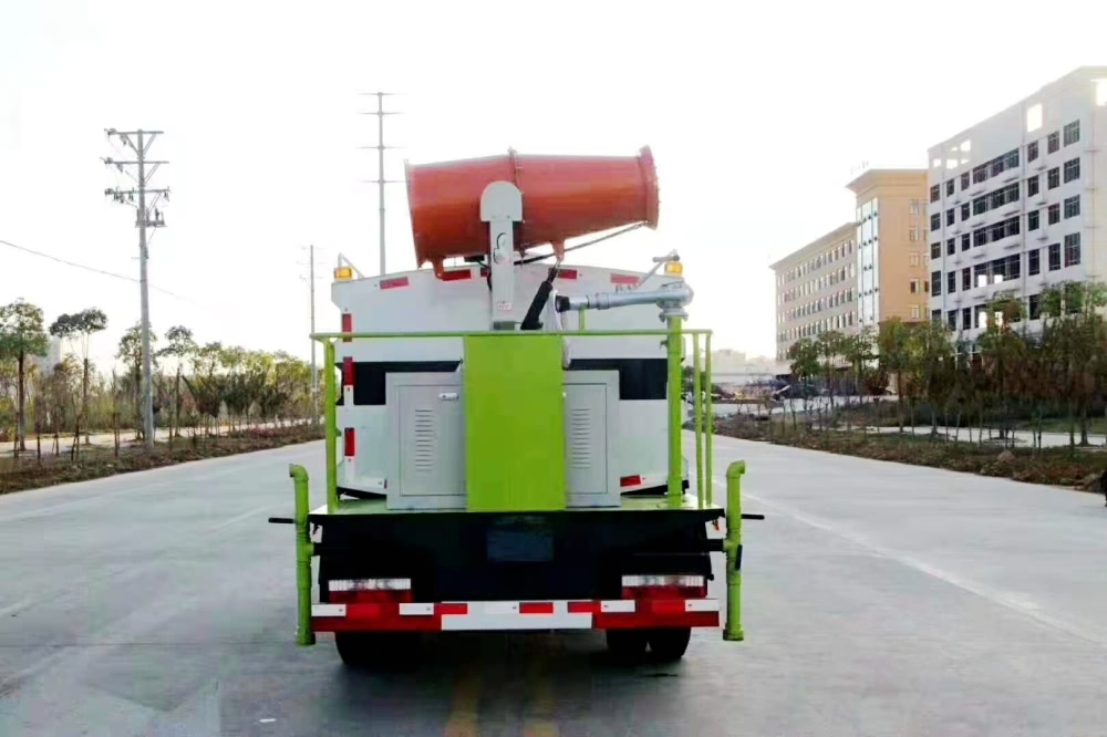 上裝配置:罐體容積4.5立方,罐體鋼板采用Q235碳鋼鋼材,前沖后灑、平臺高炮、自流閥及消防接頭各1個、水管2根,霧炮機可選裝30米。