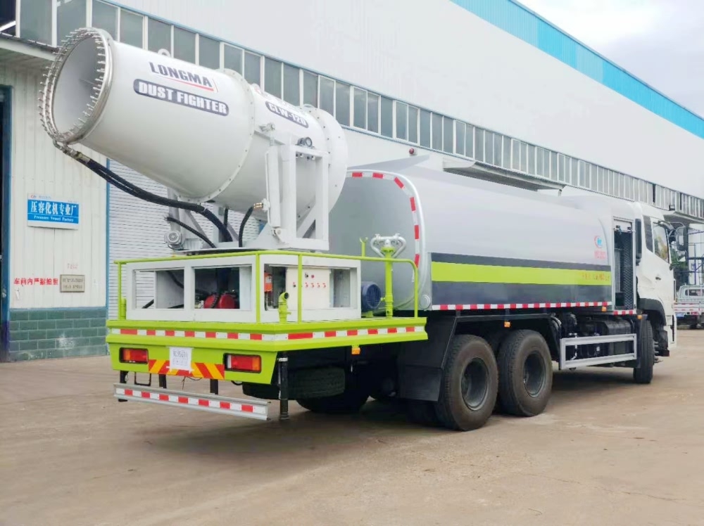 東風(fēng)天龍多功能抑塵車功能配置:帶前部沖洗路面噴灑裝置、后部扇形降塵噴灑裝置,兩側(cè)面噴灑裝置,帶后部工作平臺(tái)、平臺(tái)上安裝綠化灑水炮(炮噴射形狀可調(diào)),可調(diào)直沖狀、大雨、中雨、毛毛雨,可連續(xù)調(diào)節(jié),射程可達(dá)35米,垂直吸程6.5米,揚(yáng)程14米,帶消防接口、自流閥,可自吸自排。