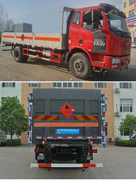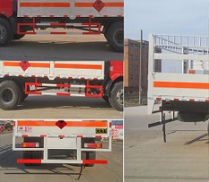 | 其他 | 該車適用于運輸危險品,用于運輸具有獨立容器(瓶)包裝的易燃氣體(類項號:2.1):液化石油氣,壓縮甲烷或甲烷含量高的壓縮天然氣,乙炔,乙烷,丁烷,丙烯,丁烯,二甲醚,壓縮氧。發(fā)動機CA4DK1-18E51,CA4DK1-22E51分別對應(yīng)的油耗值為:27.42,27.42。當整車長度為8500mm時,軸距4700mm,5000mm,5300mm與后懸2400mm,2100mm,1800mm一一對應(yīng)。當整車長度為8680mm時,軸距5600mm與后懸1680mm一一對應(yīng)。側(cè)防護和后防護裝置材料材質(zhì)為Q23碳鋼,側(cè)防護與箱體底部焊接連接,后防護裝置與車架采用焊接連接。后防護截面尺寸(mm):145×40,離地高度為540mm。僅采用底盤子午線輪胎和帶ABS的底盤,該車前輪安裝盤式制動器,前置排氣管,裝配限速裝置,限速79km/h。安裝帶有衛(wèi)星定位功能的行駛記錄儀。專用裝置為固定用卡槽。ABS系統(tǒng)生產(chǎn)廠家:長春科密汽車制動有限公司,型號:CM4XL。選裝無柵欄,選裝后部液壓尾板,貨欄顏色可變化,文字噴涂位置可變化。后部液壓尾板收起狀態(tài)長度是250mm。 | ||