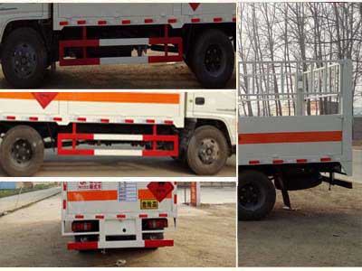 | 其他 | 該車適用于運(yùn)輸危險品。廂體頂部封閉,不可開啟。該車用于運(yùn)輸具有獨(dú)立容器(瓶)包裝的易燃?xì)怏w(類項(xiàng)號:2.1):液化石油氣,壓縮甲烷或甲烷含量高的壓縮天然氣,乙炔,乙烷,丁烷,丙烯,丁烯,二甲醚,壓縮氧;用于運(yùn)輸具有獨(dú)立容器(瓶)包裝的非易燃?xì)怏w(類項(xiàng)號:2.2):二氧化碳,壓縮氧(氮,空氣,氦,氬,氖)。防護(hù)材料:Q23碳鋼,連接方式:左右側(cè)面及后下部防護(hù)均采用焊接連接,后部防護(hù)斷面尺寸(mm):100×50,后部防護(hù)離地高度(mm):420。僅采用底盤子午線輪胎和帶ABS的底盤,該車前輪安裝盤式制動器,前置排氣管,裝配限速裝置,限速80km/h。安裝帶有衛(wèi)星定位功能的行駛記錄儀。ABS系統(tǒng)型號:APG3550500A,ABS系統(tǒng)生產(chǎn)廠家:浙江亞太機(jī)電股份有限公司。油耗對應(yīng)關(guān)系(L/100km):13.0(JX493ZLQ5)。隨底盤選裝駕駛室。選裝無柵欄??蛇x裝后部液壓尾板,后部液壓尾板收起狀態(tài)長度是250mm。危險貨物運(yùn)輸車輛的類型(FL型車輛)。 | ||
