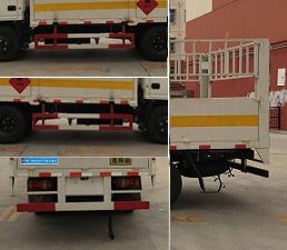| 其他 | 該車適用于運輸危險品,主要用于運輸具有獨立容器(瓶)包裝的液化石油氣,丁烷,乙炔,乙烷,丙烷,丁烯,打火機或打火機加油器,二氧化碳,壓縮氧(氮,空氣,氦,氬,氖),類項號:2.1,2.2。該車運輸?shù)慕橘|(zhì)為2.1項易燃氣體時,車輛采用”易燃氣體”標識牌,運輸?shù)慕橘|(zhì)為2.2項非易燃氣體時,車輛采用”不燃氣體”標識牌。貨欄顏色可變化,文字噴涂位置可變化,選裝無柵欄。發(fā)動機JX493ZLQ5,JX493ZLQ對應(yīng)的油耗值分別為:11.9,10.8。側(cè)防護和后防護裝置材料材質(zhì)為Q23碳鋼,側(cè)防護與箱體底部焊接連接,后防護裝置與車架采用焊接連接。后防護截面尺寸(mm):110×40,離地高度為500mm。該車安裝帶有衛(wèi)星定位功能的行駛記錄儀,僅采用前盤制動器和安裝ABS以及前置消聲器的底盤,采用子午線輪胎,安裝限速裝置,限速80km/h。專用裝置為固定用卡槽。ABS系統(tǒng)型號:APG3550500A,ABS系統(tǒng)生產(chǎn)廠家:浙江亞太機電股份有限公司。 | ||