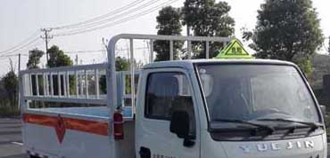 | 其他 | 該車適用于運輸危險品,主要用于運輸具有獨立容器(瓶)包裝的液化石油氣,丁烷,乙炔,乙烷,丙烷,丁烯,打火機或打火機加油器,二氧化碳,壓縮氧(氮,空氣,氦,氬,氖),類項號:2.1,2.2.該車運輸?shù)慕橘|為2.1項易燃氣體時,車輛采用”易燃氣體”標識牌,運輸?shù)慕橘|為2.2項非易燃氣體時,車輛采用”不燃氣體”標識牌.選裝無柵欄;整車長/軸距/后懸對應關系為(mm):5210/2800(2650)/1330(1480).4600/2650/870.該車安裝帶有衛(wèi)星定位功能的行駛記錄儀,僅采用前盤制動器和安裝ABS以及前置消聲器的底盤,采用子午線輪胎,安裝限速裝置,限速80km/h.專用裝置為固定用卡槽.ABS系統(tǒng)控制器型號為APG3550500A6,ABS系統(tǒng)控制器生產(chǎn)企業(yè)為浙江亞太機電股份有限公司. 發(fā)動機LJ469Q-AE8的油耗值為8.2L/100km.隨底盤選裝駕駛室.選裝駕駛室后面不同龍門架樣式 | ||