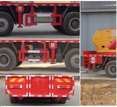 | 其他 | 該車設有吊臂,轉(zhuǎn)臺,支腿等固定裝置,通過吊臂的伸縮完成吊裝工作;該車行駛時可不帶副臂,配重,吊鉤,支腳盤,備胎架等,上裝起重機型號CLW6000,該車選用軸距(mm): 1800+3350+1350, 1950+3200+1350;防護材料:Q23碳鋼,連接方式:左右側(cè)面防護與平板底部采用焊接連接,后防護與裙邊機構(gòu)相干涉,故后防護豁免,后部離地高度:(mm)540;總質(zhì)量為42000kg,故側(cè)翻穩(wěn)定角豁免; ABS系統(tǒng)型號為4460046300,生產(chǎn)企業(yè)為威伯科汽車控制系統(tǒng)(中國)有限公司。 | ||