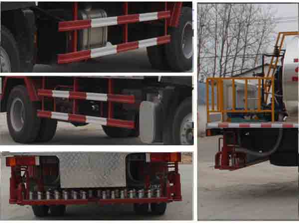| 其他 | 罐體有效容積:6.4立方米,運(yùn)輸介質(zhì)為液態(tài)瀝青,密度:900千克/立方米。橢圓罐體外形尺寸(長/長軸/短軸)(mm):4350/2410/1700(罐體內(nèi)部尺寸為3870/1930/1220), 罐體保溫層厚度為240mm。整車長/軸距/前懸/后懸對(duì)于關(guān)系為(mm):8650/5000/1250/2400;8350/4700/1250/2400;8350/4500/1250/2600;8050/4200/1250/2600.防護(hù)材料:Q23碳鋼,連接方式:左右側(cè)面防護(hù)與副梁采用焊接連接;后部專用裝置與后防護(hù)相干涉,故后防護(hù)豁免。ABS系統(tǒng)型號(hào)為4460046300,生產(chǎn)企業(yè)為威伯科汽車控制系統(tǒng)(中國)有限公司。 | ||