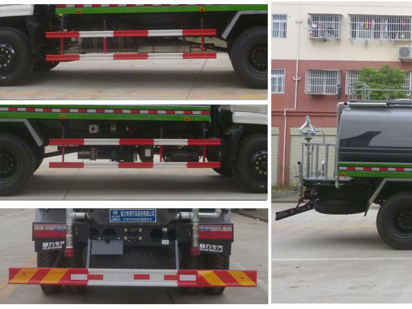 | 其他 | 1,罐體有效容積11.18立方米,罐體尺寸(長×長軸×短軸)尺寸為(mm):4800×2300×1500。2,整車長度(mm)/軸距(mm)/前懸(mm)/后懸(mm)/接近角(°)/離去角(°)的對應(yīng)關(guān)系為:8050/4500/1250/2300/25/13,8250/4500/1450/2300/23/13,8100/4500/1300/2300/25/13,8050/4700/1250/2100/25/14,8250/4700/1450/2100/23/14,8100/4700/1300/2100/25/14。3,防護(hù)材料:Q235B碳鋼,連接方式:左右側(cè)面防護(hù)與副梁均采用螺栓連接,后下部防護(hù)與車架采用螺栓連接,后部防護(hù)斷面尺寸(mm):150×50,后部防護(hù)離地高度(mm):500。4,安裝具有衛(wèi)星定位功能的行駛記錄儀。5, 選裝ABS,ABS的型號可以為ABS-E 4S/4M,生產(chǎn)廠為威伯科汽車控制系統(tǒng)(中國)有限公司。ABS的型號也可以為3631010-C2000,生產(chǎn)廠為東科克諾爾商用車制動系統(tǒng)(十堰)有限公司。6,文字噴圖位置和車輛顏色可變化。7,專用裝置:罐體,主要用于路面灑水及園林綠化。8,該車可選裝:A,后部帶弧形噴霧和LED箭頭指示燈;B,后部帶LED箭頭指示燈;C,后部帶弧形噴霧裝置。9、隨底盤選裝駕駛室。 | ||
