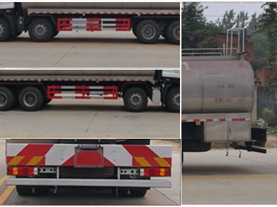 | 其他 | 該車型為非?;愤\輸車。罐體有效容積:17.1立方米;罐體外形尺寸(長/長軸/短軸)(mm):9000/2370/1560(罐體內(nèi)部尺寸為8760×2130×1320),罐體保溫層厚度為(mm):120。防護材料:Q23碳鋼,連接方式:左右側(cè)面及后部防護裝置均采用焊接連接,后部防護斷面尺寸(mm):120×50,后部防護離地高度(mm):500。隨底盤選裝駕駛室,隨底盤選裝排氣管位置。安裝帶有衛(wèi)星定位功能的行駛記錄儀。僅采用底盤輪胎型號(315/80R22.5 18PR,295/80R22.5 18PR,12R22.5 18PR,11.00R20 18PR,12.00R20 16PR)。ABS系統(tǒng)型號為4460046300,生產(chǎn)企業(yè)為威伯科汽車控制系統(tǒng)(中國)有限公司。油耗對應(yīng)關(guān)系(L/100km):MC07.28-50(40.3),MC07.31-50(40.5),MC07.34-50(40.6),MC07.35-50(40.7)。整車長/前懸/后懸/軸距對應(yīng)關(guān)系為(mm):11900/1500/2650/1800+4600+1350,11900/1500/2625/1800+4575+1400??蛇x裝擋泥板樣式可不帶炮筒。 | ||
