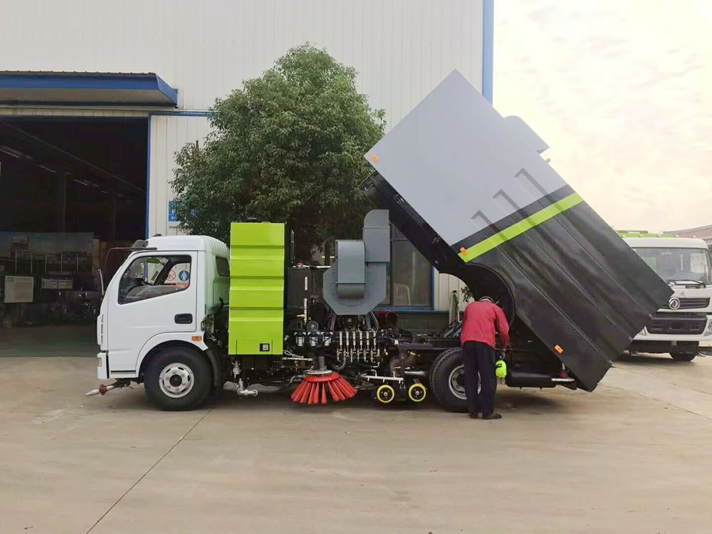 11、東風(fēng)多利卡清洗掃路車的垃圾箱內(nèi)帶有自潔功能,在垃圾傾倒完成后可將箱內(nèi)的殘留垃圾沖洗干凈,減輕環(huán)衛(wèi)工人的負(fù)擔(dān)。