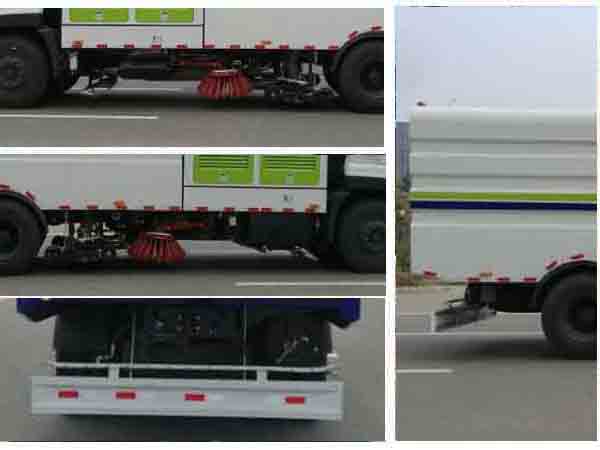 洗掃車外形長寬高尺寸為10700,10500,10050,9620×2500×3390(mm),該車選用康機ISD245 50發(fā)動機,功率180kw,可達(dá)國5排放標(biāo)準(zhǔn),洗掃車整車型號為CLW5250TXSD5,軸距為5350+1350mm,洗掃車CLW5250TXSD5底盤型號為東風(fēng)牌DFL1250A13底盤。