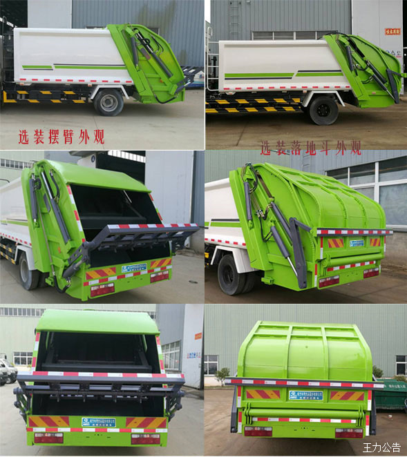 | 其他 | 1、該車選用3950和4500兩種軸距底盤。2、隨底盤選裝駕駛室。3、該車有五種可選翻轉(zhuǎn)樣式,A:三角斗裝置,B:掛桶裝置,C:擺臂裝置,D:大落地斗裝置,E:無后翻轉(zhuǎn)裝置。當選擇ABCD時,該車整車長(mm)/軸距(mm)/后懸(mm)/整備質(zhì)量(Kg)的對應關系為:7690/3950/2510/8900,8240/4500/2510/9700;當選擇E時,該車整車長(mm)/軸距(mm)/后懸(mm)的對應關系為:7450/3950/2270,8000/4500/2270。4、防護材料:Q235碳鋼,連接方式:左右側(cè)面防護采用焊接連接在副梁上,后部防護由專用裝置代替豁免。5、ABS系統(tǒng)生產(chǎn)廠家,型號 :焦作博瑞克控制技術有限公司,J ABS.安裝具有衛(wèi)星定位功能的行駛記錄儀。6、車輛顏色、文字噴涂及局部細節(jié)可變化。7、僅采用發(fā)動機與油耗值對應關系為(L/100km):YC4EG170-50/26.0,YC4EG185-50/26.3,ISB180 50/27.8,ISD160 50/26.3。8、專用裝置:箱體。主要用于城鎮(zhèn)環(huán)衛(wèi)垃圾的收集與運輸。9、該車可選裝新款大落地斗裝置和擺臂裝置外觀。 | ||