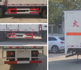 | 其他 | 該車適用于運(yùn)輸危險(xiǎn)品。隨底盤選裝駕駛室。選裝右側(cè)箱體不開門,選裝側(cè)門型式及位置,選裝廂體內(nèi)部照片。選裝不帶側(cè)開門對(duì)應(yīng)的寬度為1950mm。廂體頂部封閉,不可開啟。僅采用底盤子午線輪胎和帶ABS的底盤,該車前輪安裝盤式制動(dòng)器,前置排氣管,裝配限速裝置,限速80km/h。安裝帶有衛(wèi)星定位功能的行駛記錄儀。安全裝置為導(dǎo)靜電帶,用于防止靜電。ABS系統(tǒng)型號(hào):APG3550500A,ABS系統(tǒng)生產(chǎn)廠家:浙江亞太機(jī)電股份有限公司。該車運(yùn)輸具有獨(dú)立容器包裝的易燃?xì)怏w:液化石油氣、壓縮天然氣、乙炔、乙烷、丙烷、丁烷、異丁烷、丁烯、甲烷、丙烯、環(huán)丁烷、丙二烯、甲乙醚、打火機(jī)或打火機(jī)加油器(裝有易燃?xì)怏w)、氫。運(yùn)送危險(xiǎn)品類項(xiàng)號(hào)為2.1。側(cè)防護(hù)和后防護(hù)裝置材料材質(zhì)為Q23碳鋼,側(cè)防護(hù)與箱體底部焊接連接,后防護(hù)裝置與車架采用焊接連接。后防護(hù)截面尺寸(mm):100×60,離地高度為450mm。發(fā)動(dòng)機(jī)JX493ZLQ5,JX493ZLQ對(duì)應(yīng)的油耗值分別為:11.9,10.8。 | ||