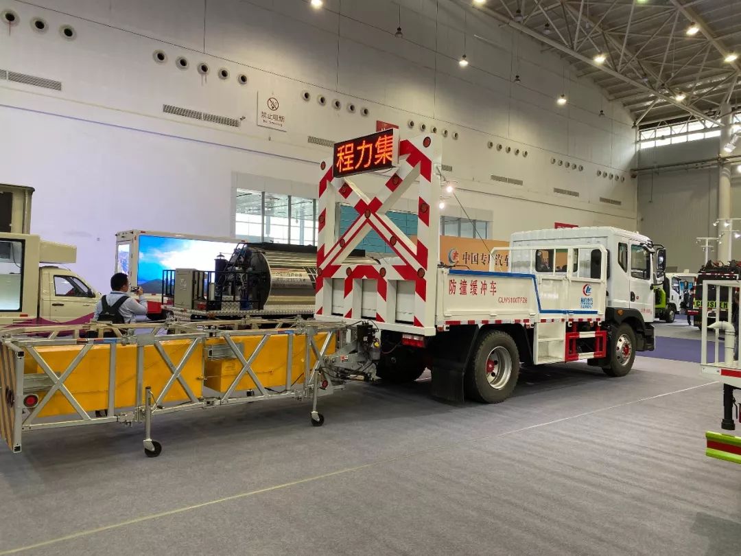 其中,程力公司自主研發(fā)的防撞緩沖車,用于高速路維修施工,它可以吸收兩噸每小時120公里的撞擊力,來保障高速上施工人員的生命安全。
